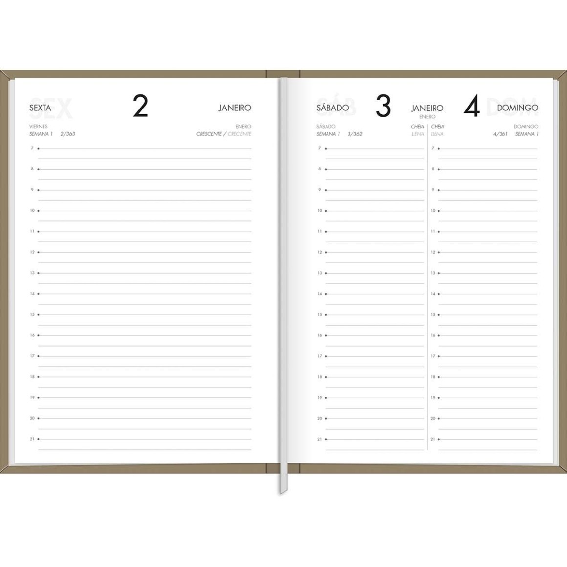 A Agenda Executiva Costurada Diária 13,4 x 19,2 cm Napoli Cores 2024 tem visão de 1 dia por página, exceto sábado e domingo. Possui capa revestida em material especial. Ideal para a organização do dia a dia, em casa ou no trabalho.