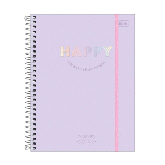 Se você busca um produto inspirado nas principais tendências de moda para se organizar, o planner espiralado Happy da Tilibra é a escolha perfeita. O produto tem tamanho 17,7 x 24 cm, capa dura com detalhes metalizados e fechamento com elástico, bolsa de papel, adesivos e folhas com visões anual, mensal e semanal.