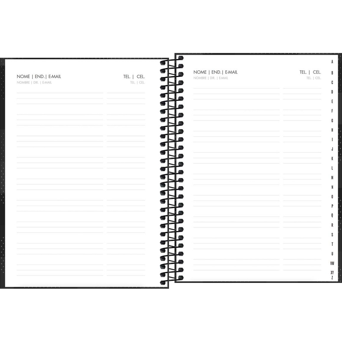 O índice telefônico de mesa Phone Colors da Tilibra facilitando a organização de contatos. O produto tem tamanho 13,9 x 21 cm, capa dura com visual neutro para combinar com qualquer necessidade de uso, índice em ordem alfabética e 39 folhas com gramatura de 120 g/m².