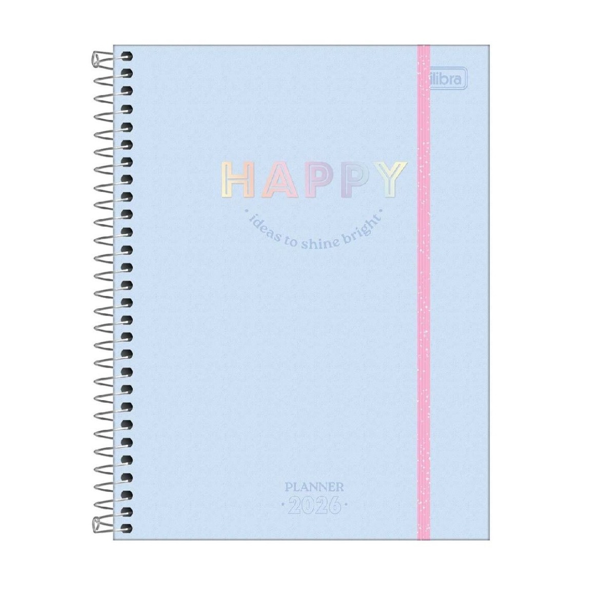 Se você busca um produto inspirado nas principais tendências de moda para se organizar, o planner espiralado Happy da Tilibra é a escolha perfeita. O produto tem tamanho 17,7 x 24 cm, capa dura com detalhes metalizados e fechamento com elástico, bolsa de papel, adesivos e folhas com visões anual, mensal e semanal.