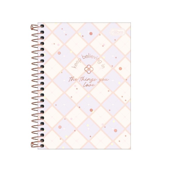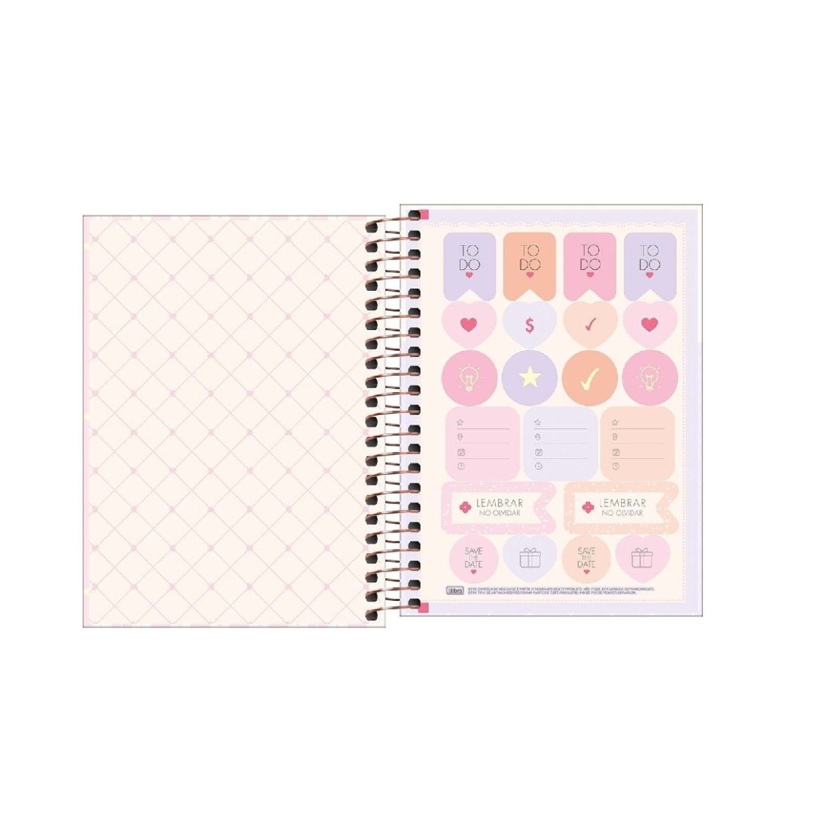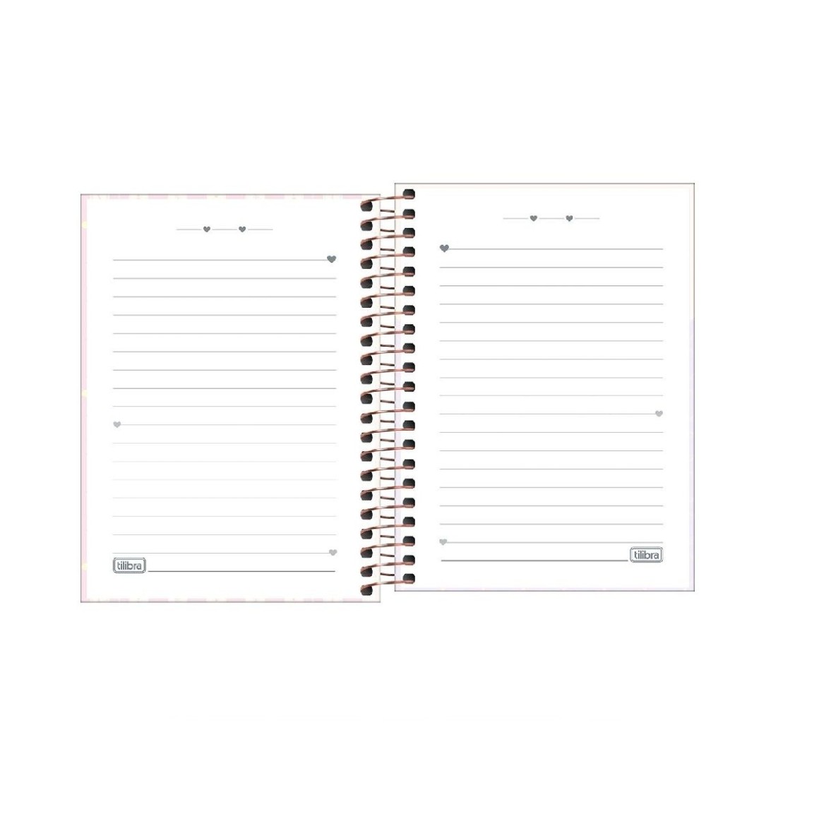 A Caderneta Espiral Capa Dura 1/8 Soho 80 Folhas possui capa dura com detalhe metalizado, parte interna decorada, folhas pautadas decoradas e espiral colorido. Ideal para o dia a dia.