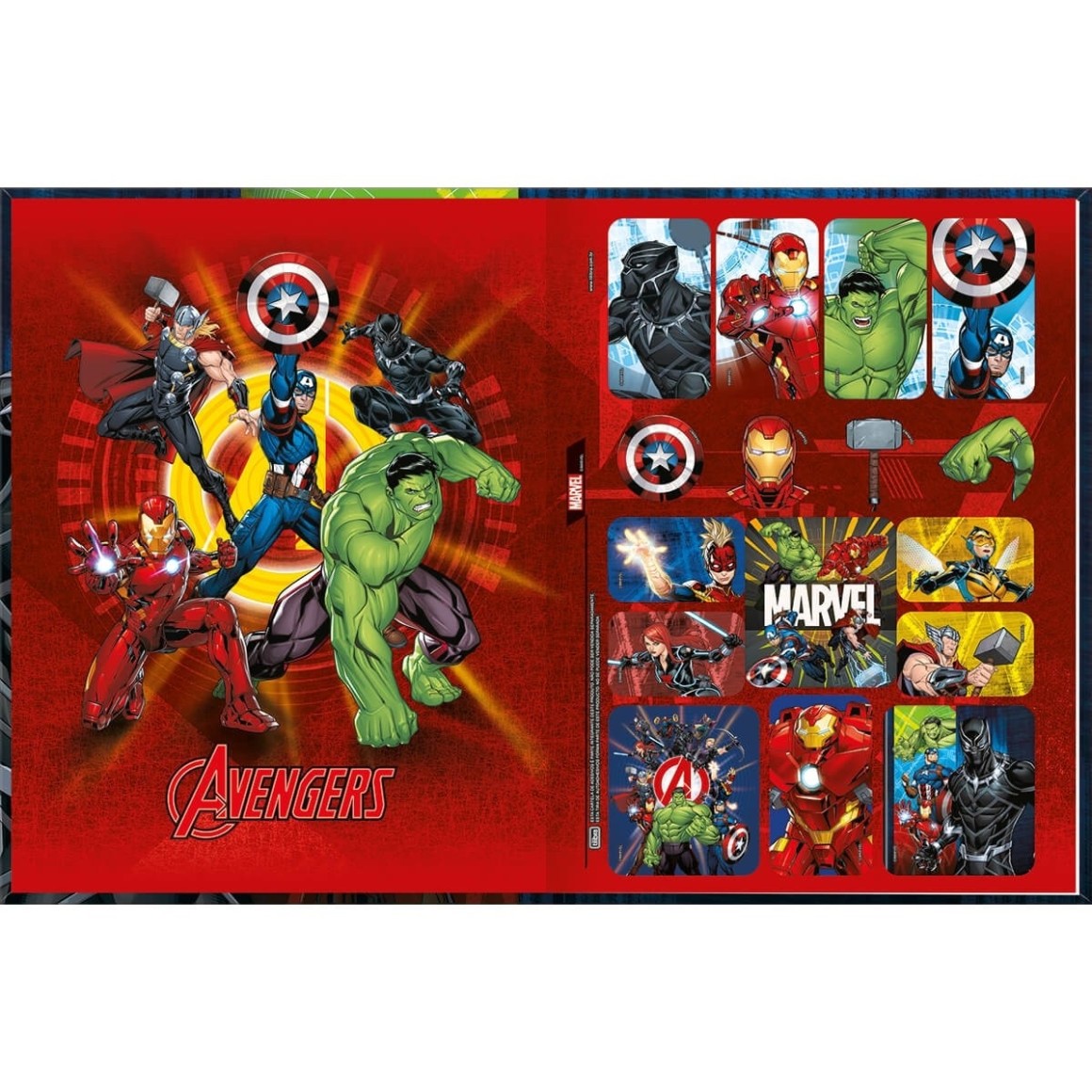 O Caderno Brochura Capa Dura Universitário Avengers 80 Folhas possui capa dura com a parte interna decorada, folha de adesivos e folhas pautadas. Ideal para o dia a dia na escola.