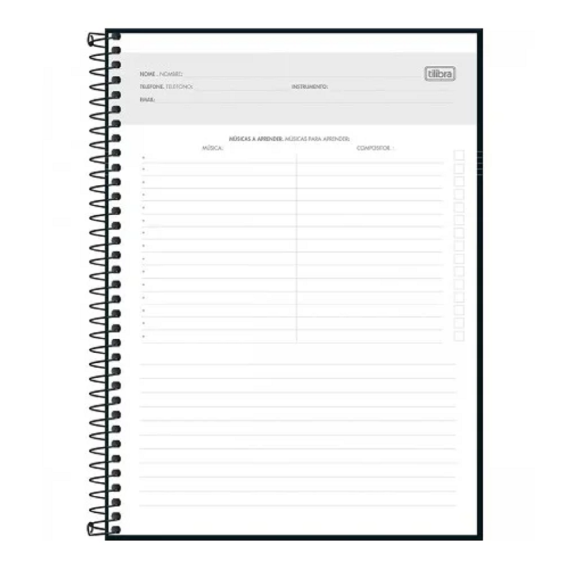 O Caderno de Música Espiral Capa Dura Universitário Tilibra 80 Folhas possui capa dura e folhas específicas para partituras. Ideal para atividades musicais.