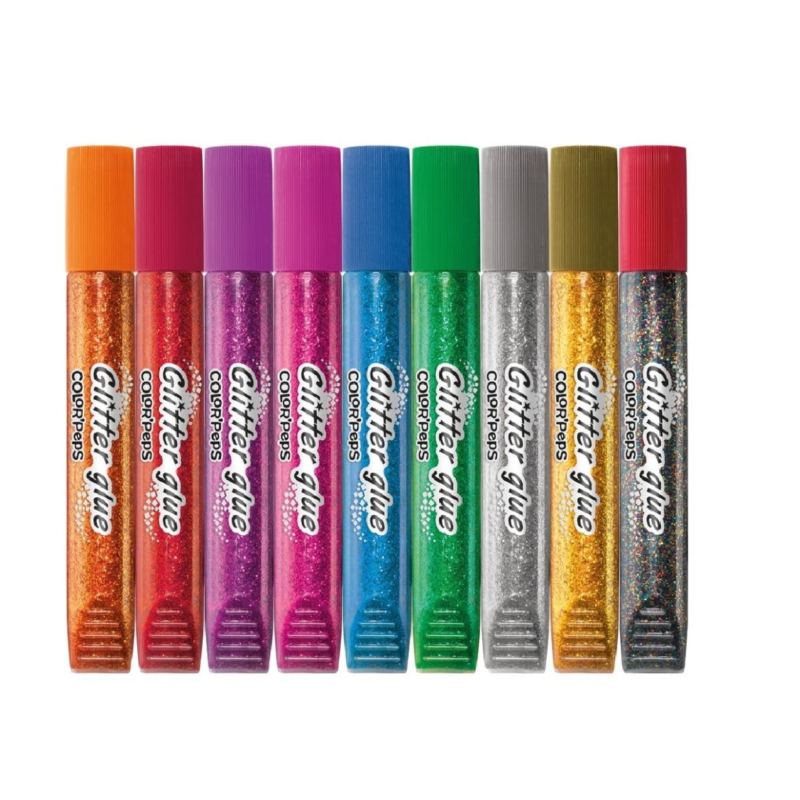 Fácil de usar, este pacote com 9 cores de cola glitter inclui: