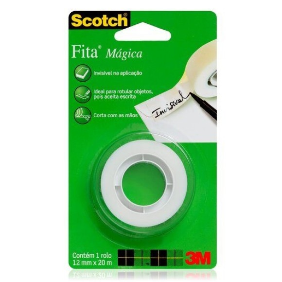 A Fita Mágica® Scotch® é a melhor opção para uso em escritórios, casas e escolas. Ela não aparece em fotocópias e scanner e nem amarela com o tempo. Conheça todos os benefícios da Fita Mágica Scotch®. É fácil e prática de ser manuseada, pois tem desenrolamento suave e corta facilmente. Com seu acabamento fosco e a tecnologia de adesivo 3M, garante ótima ligação com o papel, podendo ser retirada sem deixar rastros.