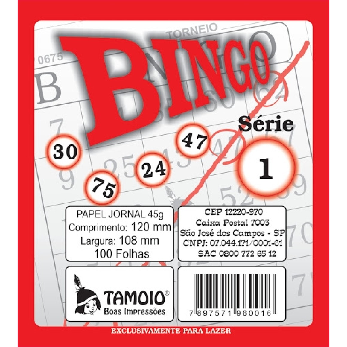 BLOCO DE CARTELA DE BINGO JORNAL COM 100 FOLHAS TAMOIO