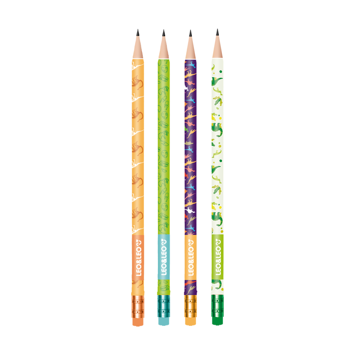 KIT 4 LÁPIS GRAFITE HB DINO C/ BORRACHA LEO&LEO