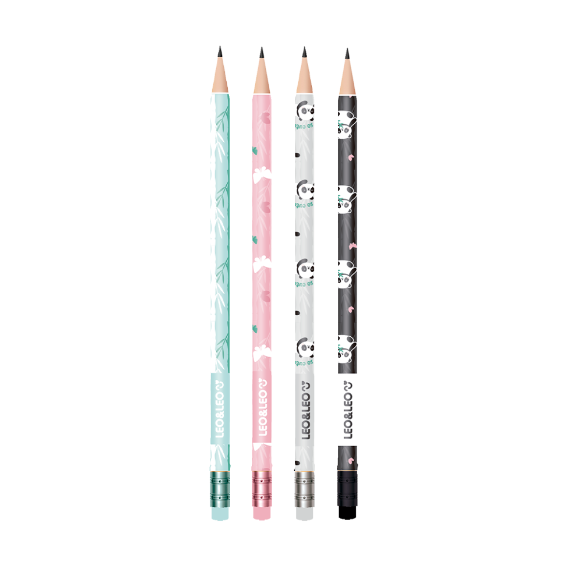 KIT 4 LÁPIS GRAFITE HB PANDA C/ BORRACHA LEO&LEO