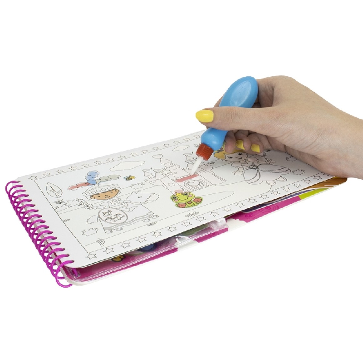 Acabamento Livro espiral com pincel-reservatório plástico (água), páginas c/efeito autosecante. Embalagem com fechamento em adesivo.