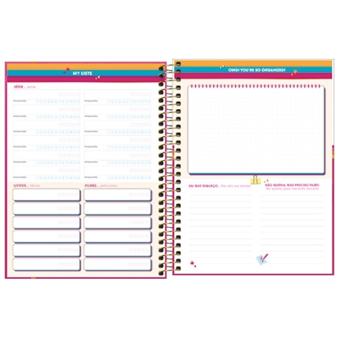 O PLANNER ESPIRAL 17,7 X 24 CM LOVE PINK  PODE SER USADO PARA ORGANIZAR OS COMPROMISSOS DO DIA A DIA, EM CASA, NO TRABALHO E NA ESCOLA. O PRODUTO, COM VISÕES ANUAL, MENSAL E SEMANAL, ALÉM DE FOLHAS PARA ANOTAÇÕES, POSSUI CAPA DURA COM HOT STAMPING E FECHAMENTO EM ELÁSTICO, ESPIRAL DOURADO, 80 FOLHAS, ADESIVOS E BOLSA DE PAPEL PARA GUARDAR DOCUMENTOS.