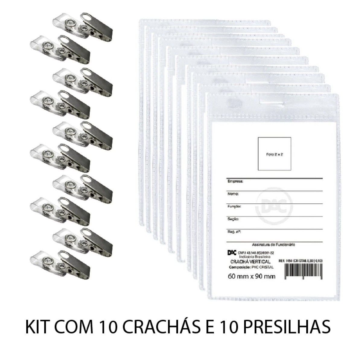 Quantidade: 10 Crachás e 10 Presilhas.