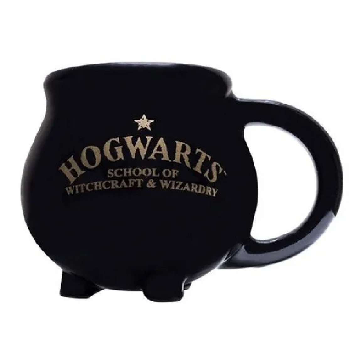 Hogwarts e do outro lado está escrito o brasão da escola e vem na caixa