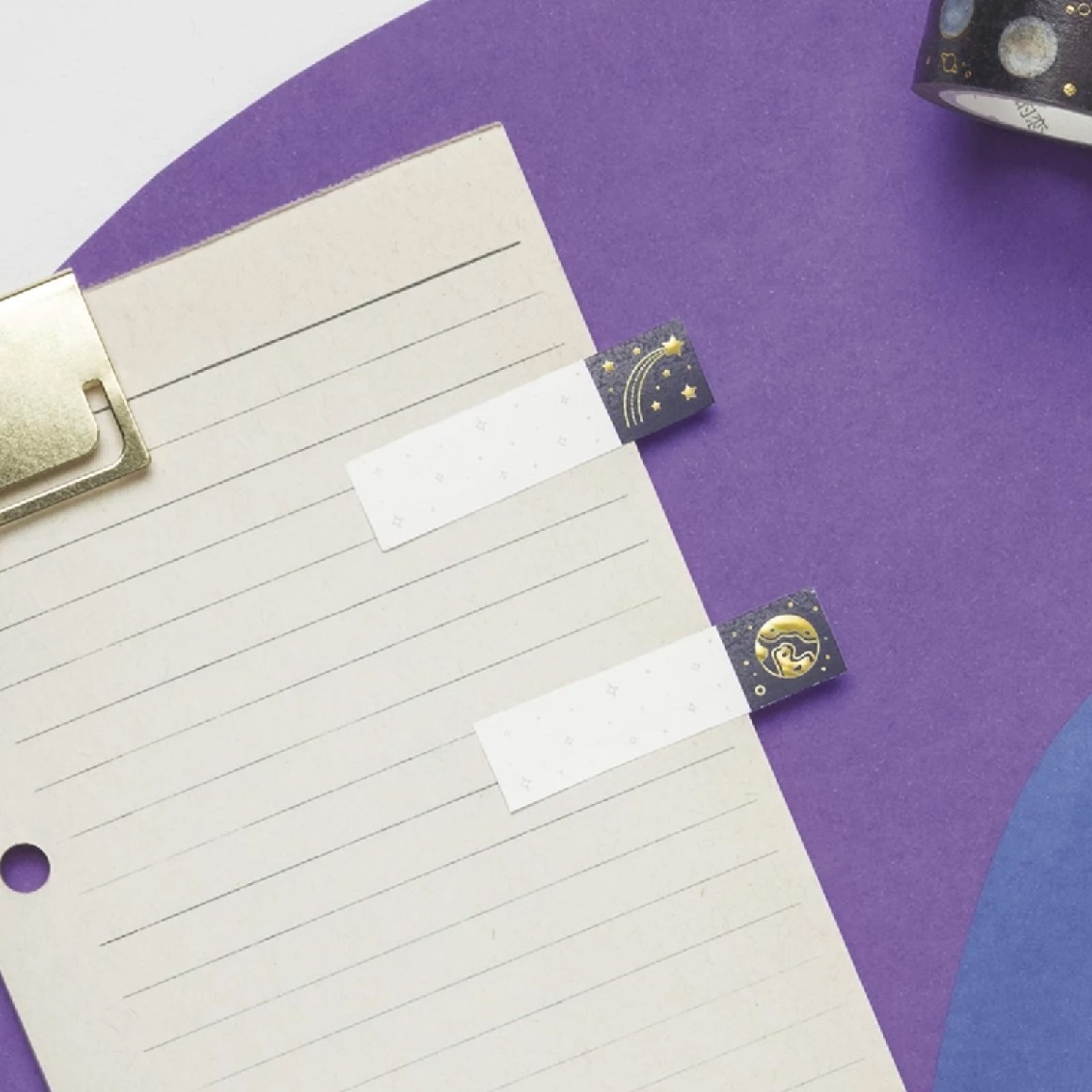 Do universo diretamente pra papelaria mais próxima: além de influenciar comportamentos, os astros estão influenciando os hábitos de compra dos amantes de papelaria. Conheça a linha Holic Cosmos e tenha muitos materiais estampados com astros, planetas, estrelas e luas! Os marcadores de página Holic Cosmos vão te ajudar a marcar as suas páginas de um jeito super prático e lindo! De fácil aplicação, o adesivo é reposicionável e aceita escrita.