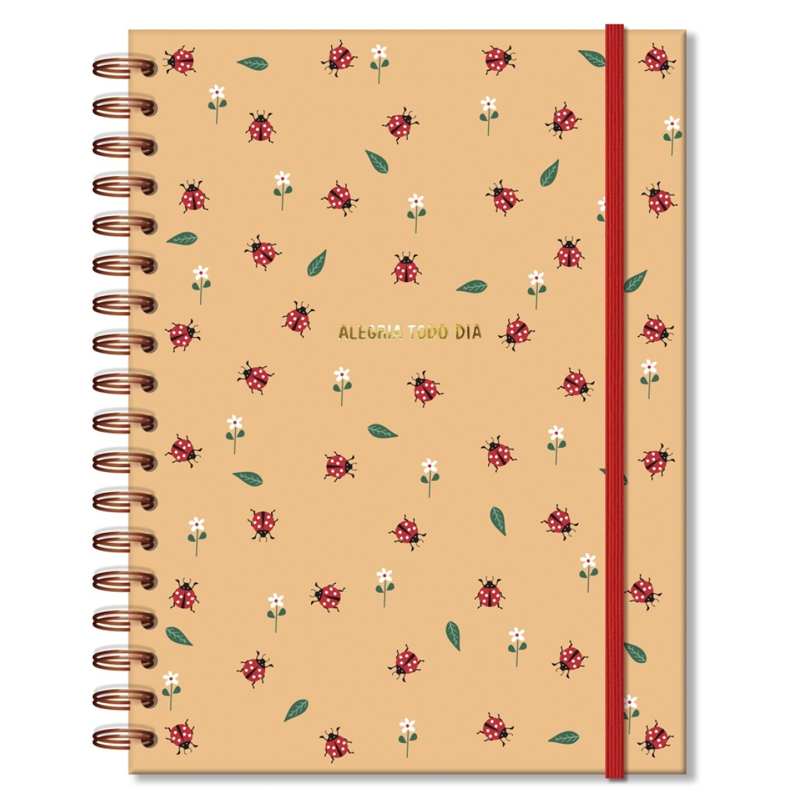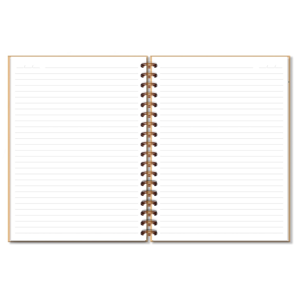 Caderno colegial capa dura, miolo pautado com 80 folhas em papel off set 90g, formato 17,5 x 23,5cm, encadernação wire-o e elástico para fechamento. Acompanha envelope para documentos e folha de adesivos.