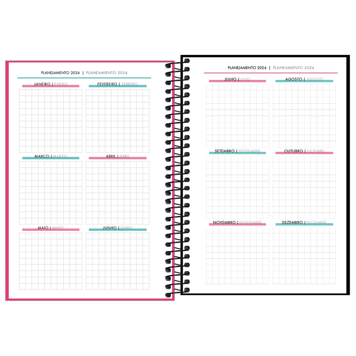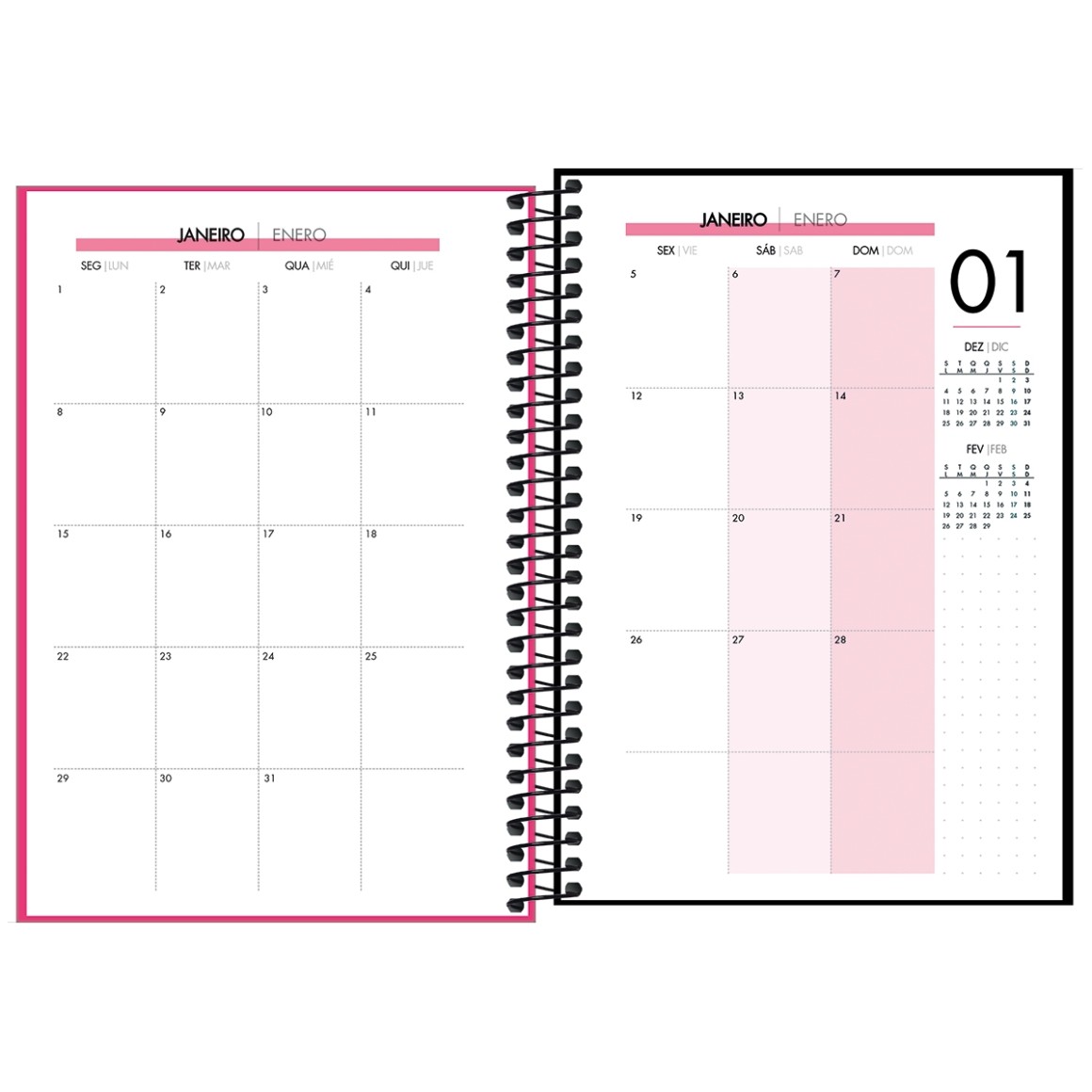semanal, possui capa plástica com fechamento em elástico, espiral colorido, 80