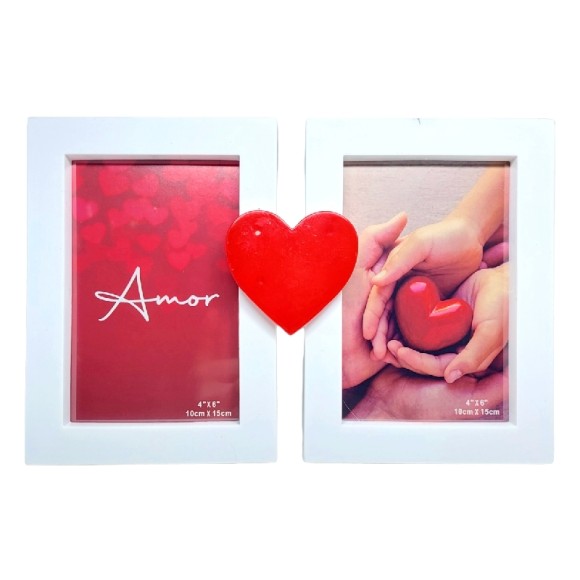 PORTA RETRATO AMOR 2 FOTOS 10X15CM CORAÇÃO