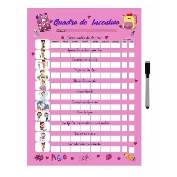 Nossos quadros do incentivo são uma ótima opção para você interagir com as crianças e lhes ensinar de uma forma divertida a terem uma rotina organizada de acordo com o seu dia a dia.