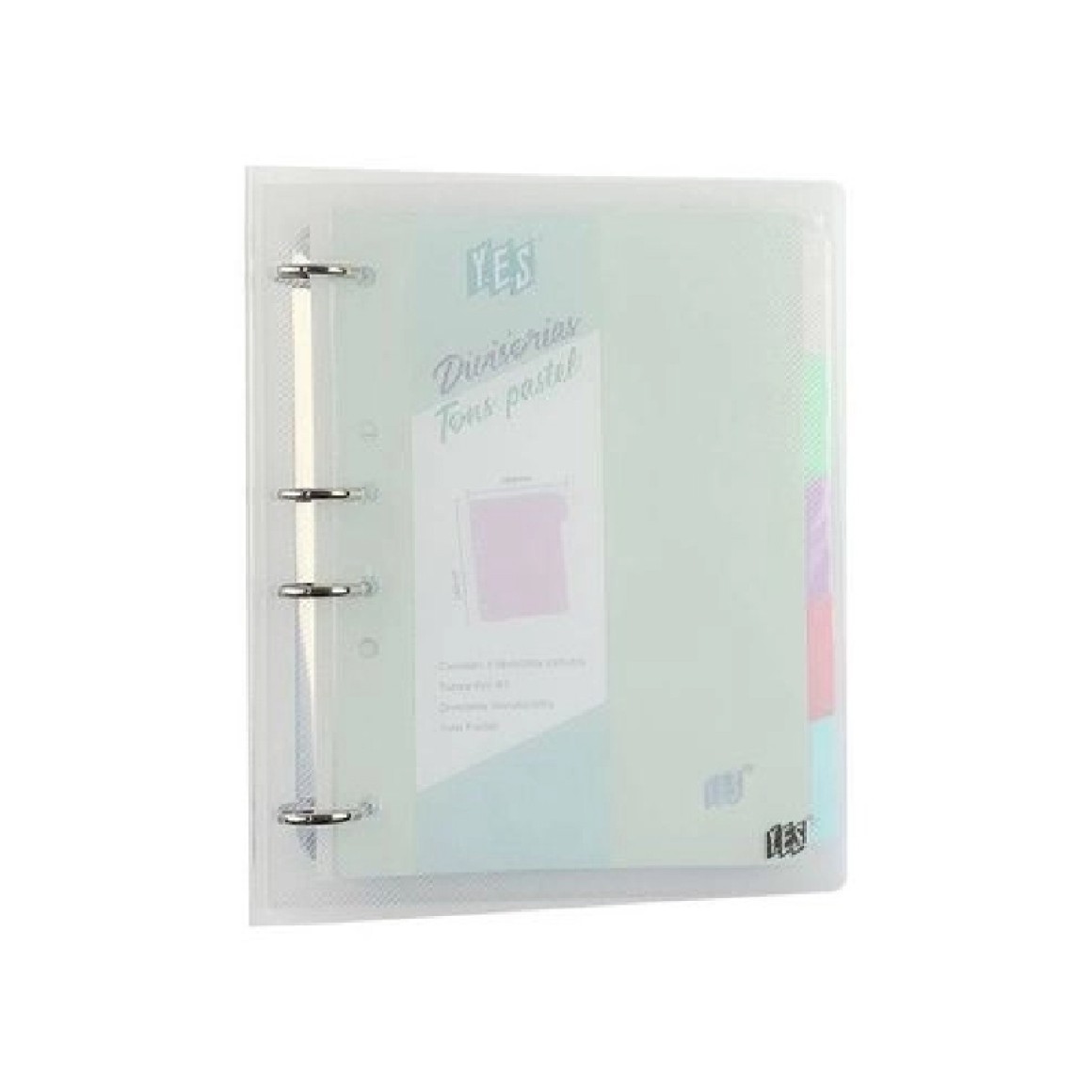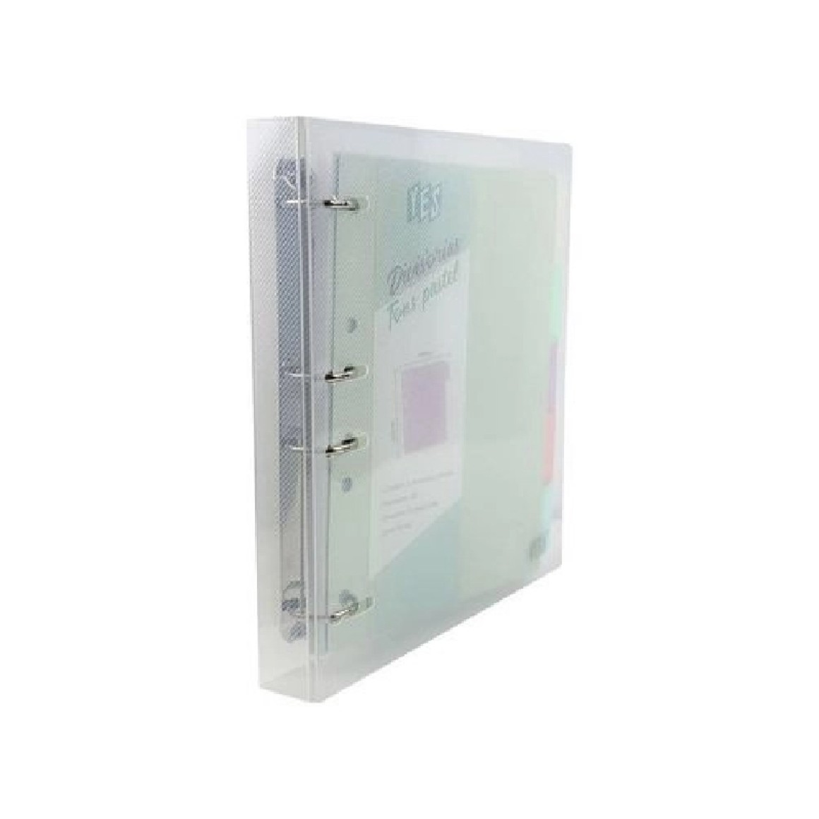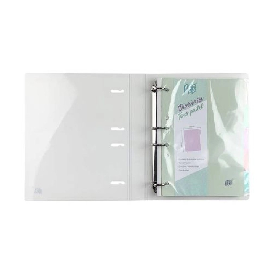 Fichário Argolado Colegial, cristal, com divisórias em tons pastel, bloco com 96 folhas e chapa transparente texturizada. Produto leve, moderno e muito elegante. Aceita Refil: BF2096C.