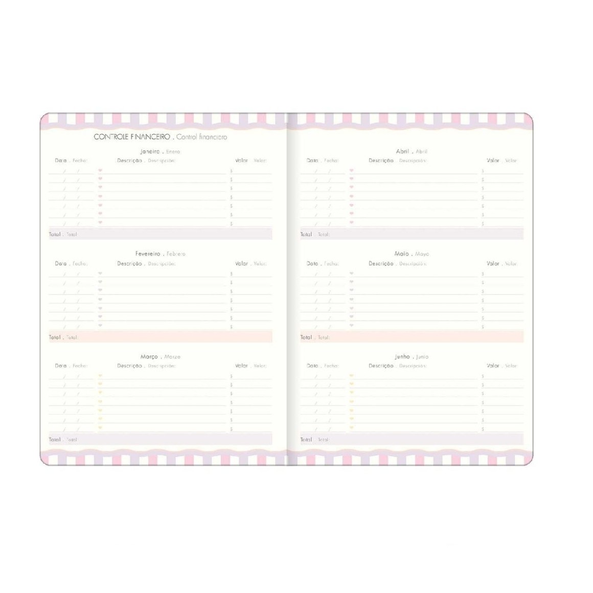 Conteúdo: Controle de hábitos, Controle financeiro, Listas, Metas e objetivos e Página para planejamento do futuro