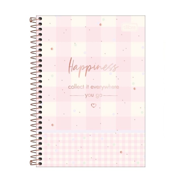 A Caderneta Espiral Capa Dura 1/8 Soho 80 Folhas possui capa dura com detalhe metalizado, parte interna decorada, folhas pautadas decoradas e espiral colorido. Ideal para o dia a dia.