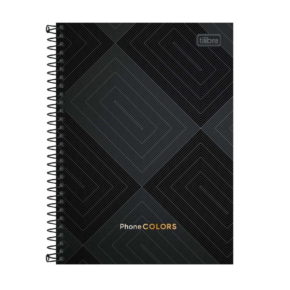 O índice telefônico de mesa Phone Colors da Tilibra facilitando a organização de contatos. O produto tem tamanho 13,9 x 21 cm, capa dura com visual neutro para combinar com qualquer necessidade de uso, índice em ordem alfabética e 39 folhas com gramatura de 120 g/m².