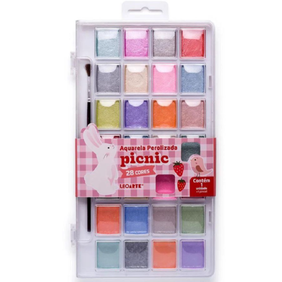 Nada mais estimulante do que provocar a criatividade com a Aquarela Perolizada PicNic LeoArte. Além de desenvolver as habilidades artísticas, a aquarela permite a imaginação fluir, pois são 28 cores vivas e perolizadas. Ainda acompanha 1 pincel, sendo a ferramenta ideal para iniciantes testarem desenhos com diversas cores e nuances. A tinta possui ótima pigmentação e cobertura, sendo muito agradável para pintar. Crie as próprias obras de arte na escola ou em casa com a Aquarela Perolizada PicNic LeoArte. É pura diversão em forma de criação.