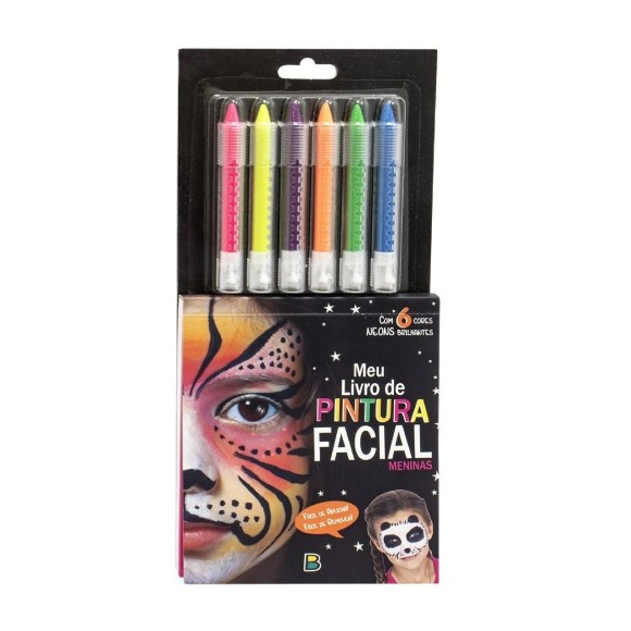 Acabamento: Brochura para colorir com 6 canetas de pintura facial com cores Neons brilhantes
