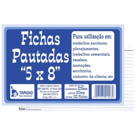 BLOCO DE FICHAS PAUTADAS 5X8 100 FLS TAMOIO