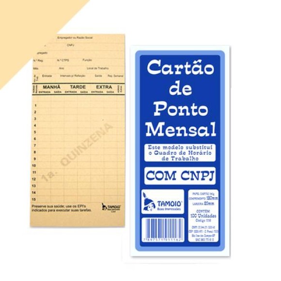 BLOCO DE CARTÃO DE PONTO MENSAL C/ CNPJ 100 UNIDADES TAMOIO