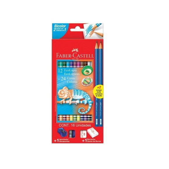 ECOLÁPIS DE COR BICOLOR 12 LÁPIS 24 CORES KIT FABER-CASTELL