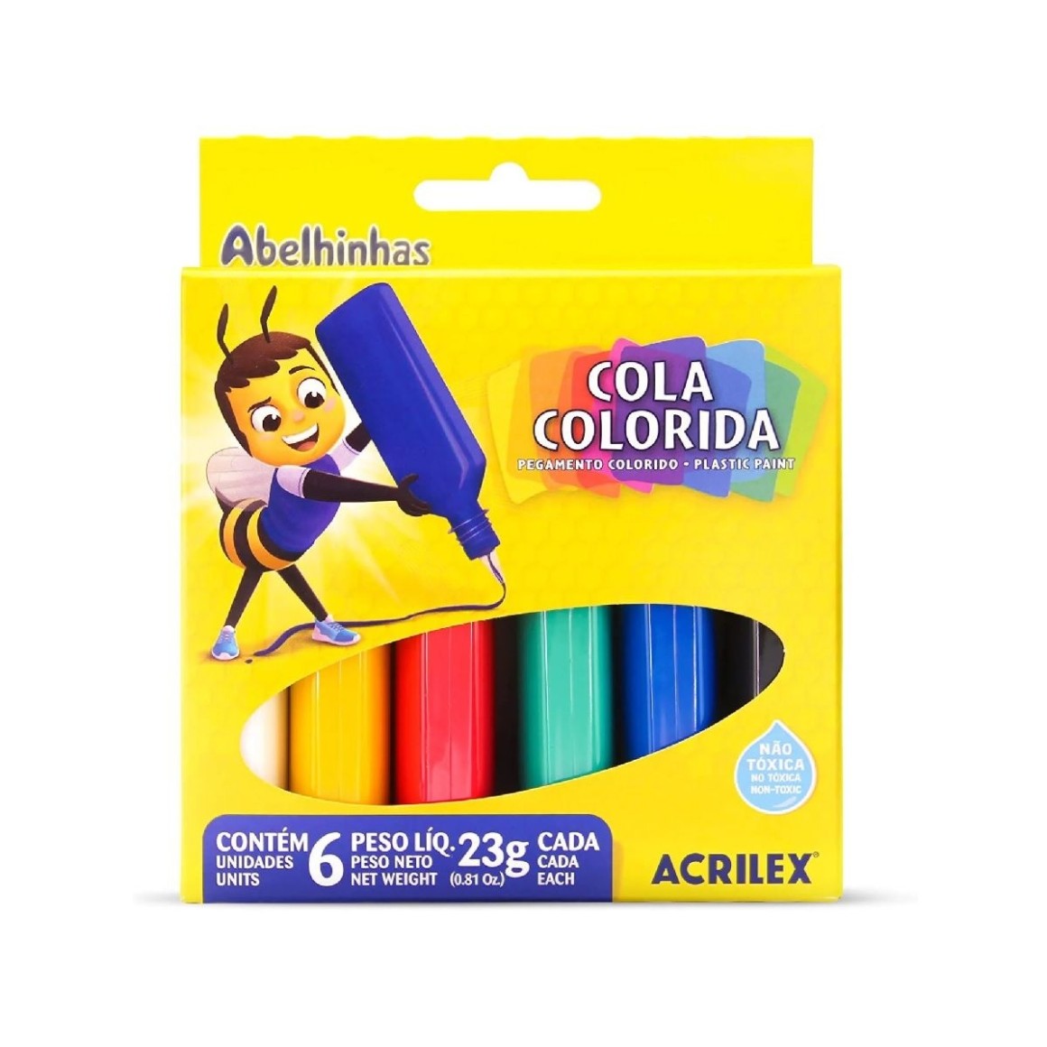 COLA COLORIDA ABELHINHAS 6 CORES ACRILEX