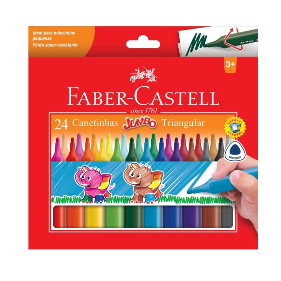 CANETA HIDROGRAFICA JUMBO TRIANGULAR 24 CORES FABER-CASTELL