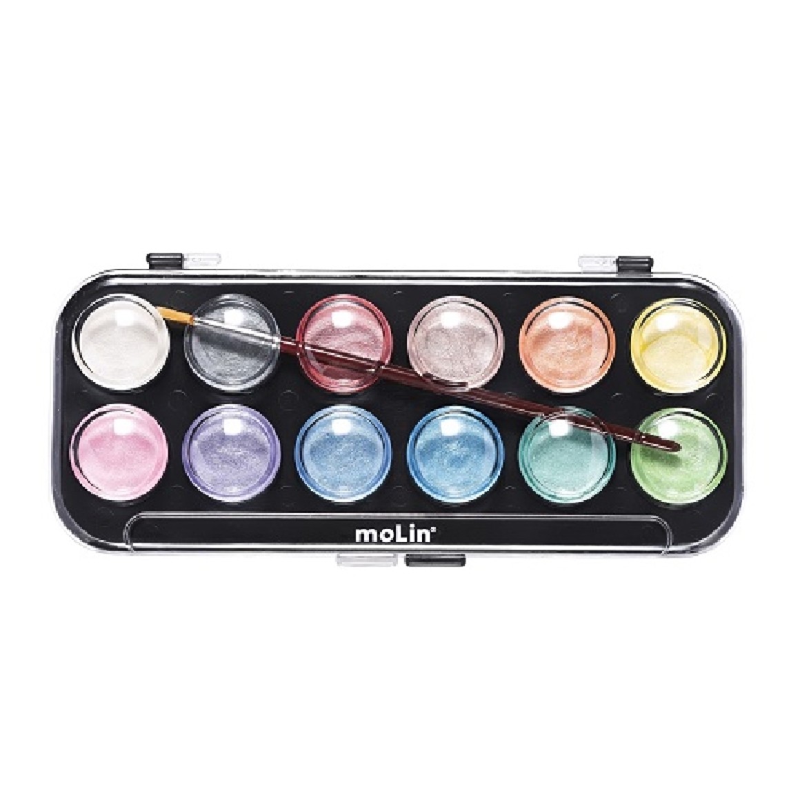 • Disponível em Caixa com Estojo plástico resistente, com 12 cores e 1 Pincel.