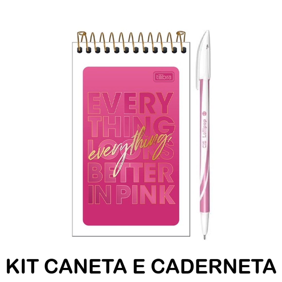 KIT CANETA CIS LOLLIPOP 0.5 ROSA + CADERNETA ESPIRAL CAPA FLEXÍVEL TILIBRA LOVE PINK