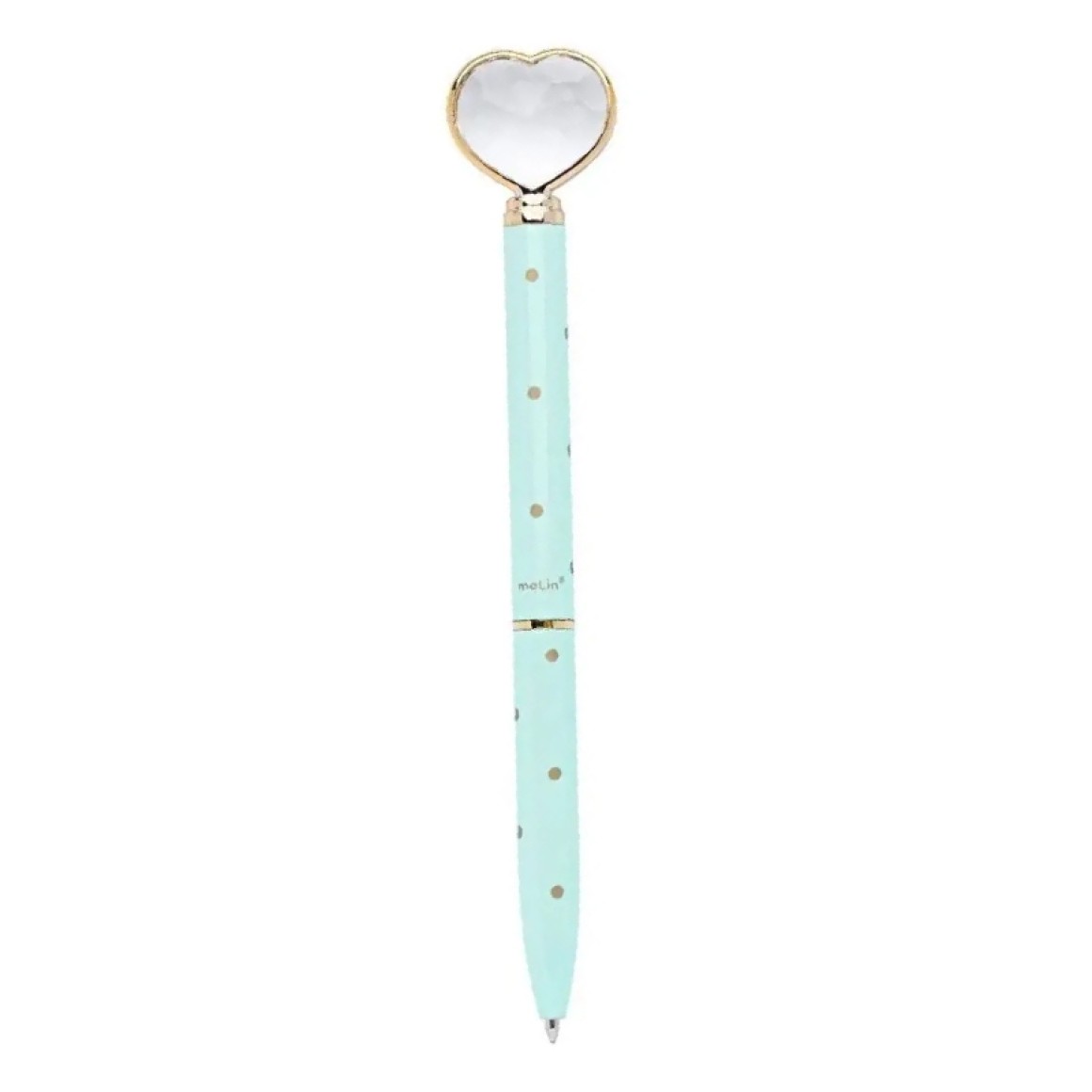 CANETA CORAÇÃO DE DIAMANTE BOLINHA AZUL CLARO MOLIN